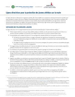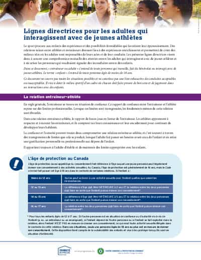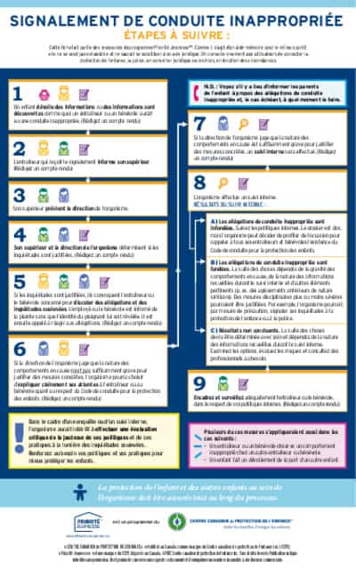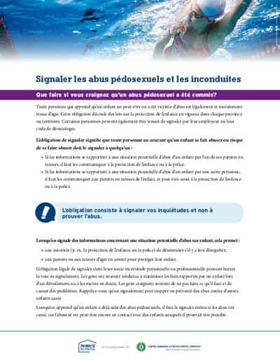 - Ces fiches ressources comprennent de l’information sur les relations entraîneurs-athlètes, des lignes directrices pour les adultes qui interagissent avec de jeunes athlètes ainsi que les étapes à suivre pour signaler les comportements inappropriés et les abus pédosexuels :
